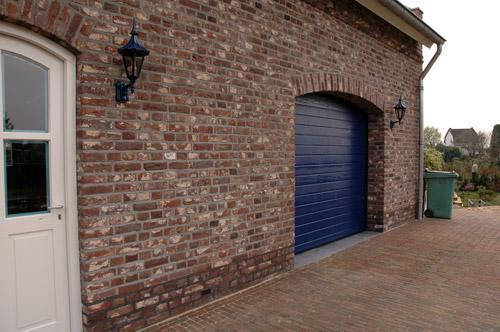 Garagedeur met houtnerf in de bijzondere kleur RAL5013.