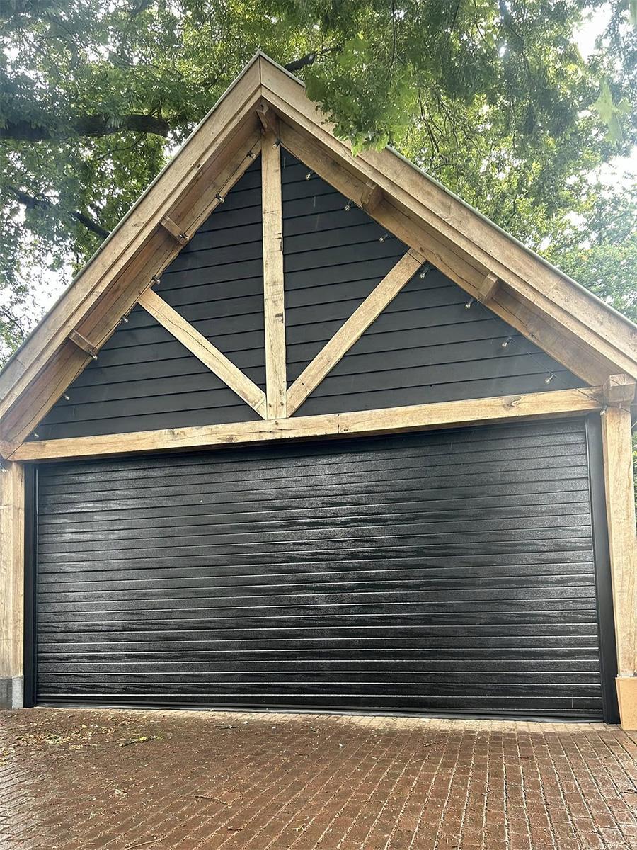 Deze sectionale deur, geplaatst in Maasbree, heeft een afmeting van 5580 mm breed en 2600 mm hoog. De deur is voorzien van een schuine bodemsectie om het hoogteverschil van links naar rechts op te vangen, wat zorgt voor een perfecte afwerking, zelfs bij ongelijkmatige ondergronden. Deze deur biedt zowel functionaliteit als esthetiek, en is ideaal voor situaties waarin een nauwkeurige aanpassing aan het terrein vereist is. Met zijn robuuste ontwerp en maatwerk is het de perfecte oplossing voor een soepele en efficiënte toegang.