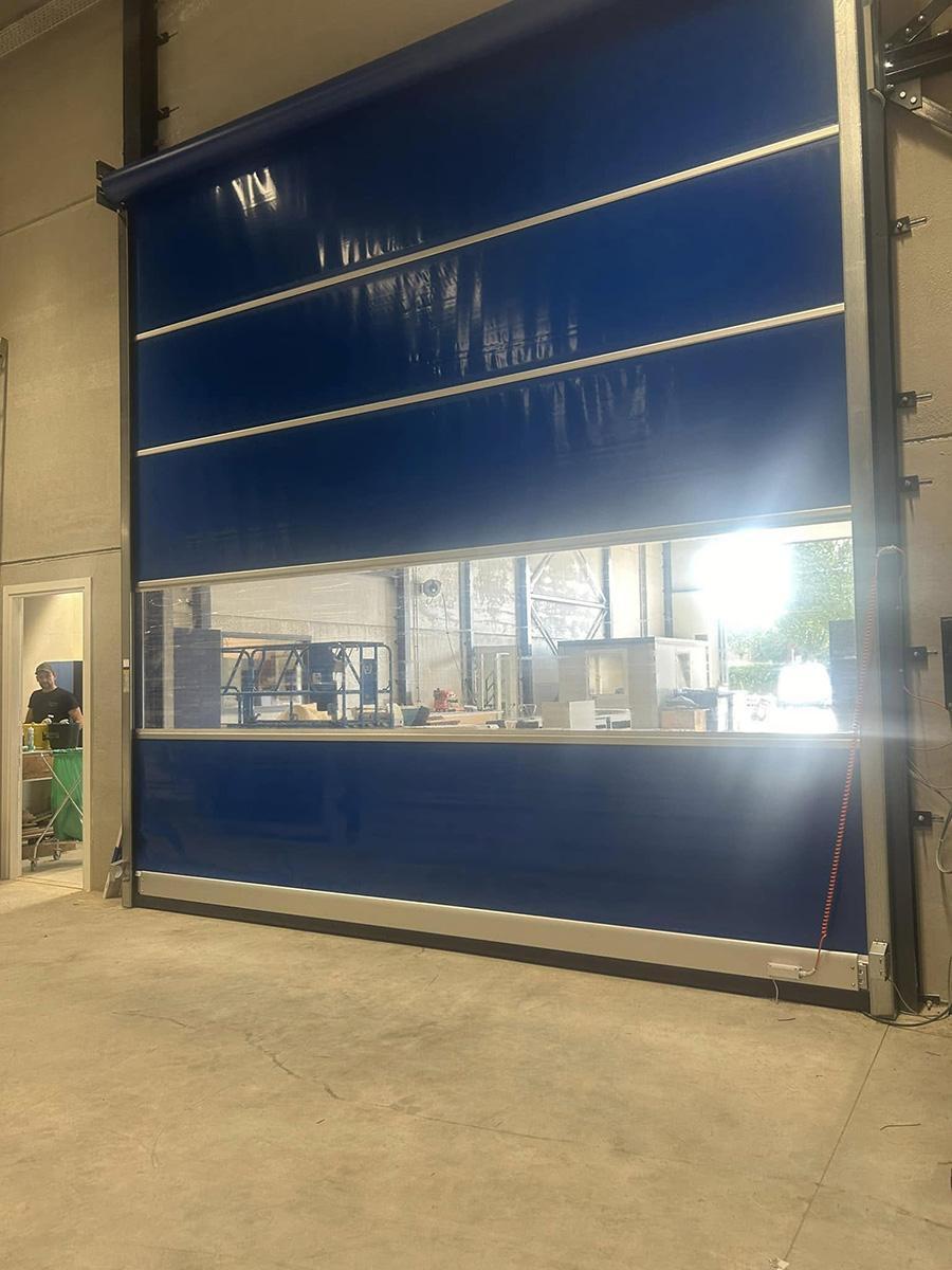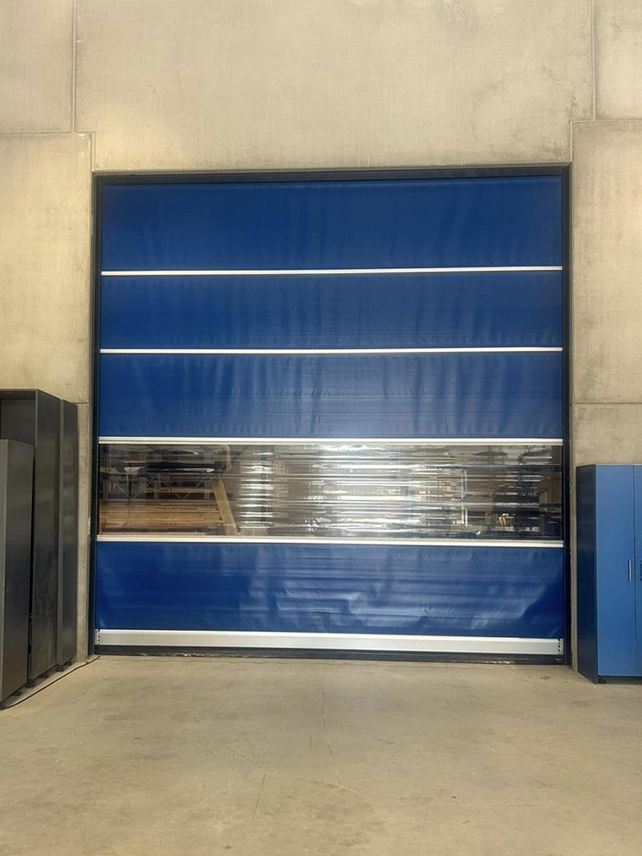 Deze snelloopdeur, geplaatst door Tinnemans Interieurbouw in Maasbracht, heeft een afmeting van 4800 mm breed en 5000 mm hoog. De deur is voorzien van een zichtvenster, wat zorgt voor extra zichtbaarheid en een lichtdoorlatende functie, ideaal voor werkruimtes waar zichtbaarheid belangrijk is. De snelloopdeur biedt niet alleen snelle en efficiënte toegang, maar is ook een praktische oplossing voor ruimtes die vaak in gebruik zijn. Met zijn robuuste constructie en moderne ontwerp is deze deur perfect voor verschillende industriële toepassingen.